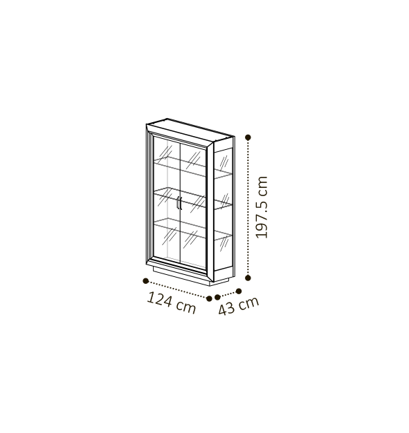 В коллекции Elite потрясающе соединились чистота прямых линий с необыкновенными объемными формами. Фасады витрин и столешницы столов в форме усечённой призмы очаровывают и привлекают внимание. Блестящие декоративные полосы на дверях и цоколе, с бронзовым оттенком, придают лёгкость витринам и комодам.