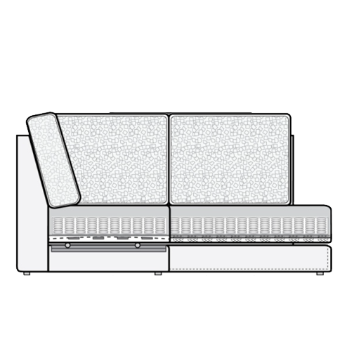 Модель можно изготовить в материале одного цвета (mono), а также можно кастомизировать за счет акцента в виде комбинированного чехла split. Основная ткань: чехлы сидений, спинки, царги, декоративные подушки, ткань split: приспинные подушки.