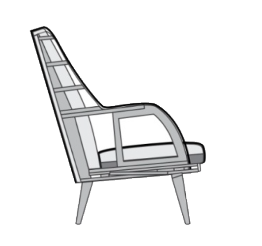 акцентной, если выбрать двухцветный вариант чехла (split). Основная ткань: внутренняя часть спинки и подлокотников, подушка, ткань компаньон: внешняя часть спинки и подлокотников.