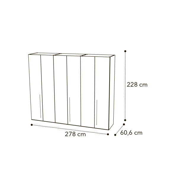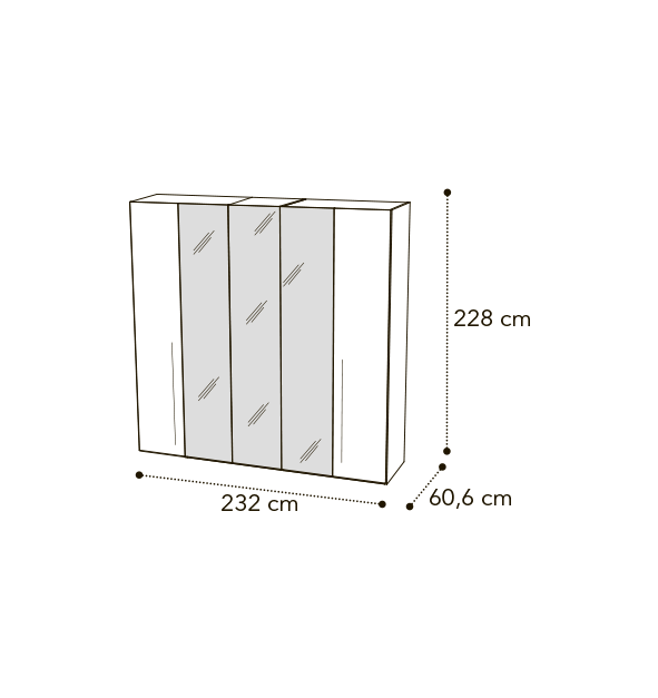 *Возможно собрать шкаф более шести створок. Стандартная комплектация шкафа включает полку и штангу. Для комфортного хранения вещей можно укомплектовать шкафы целым набором дополнительных полок и выдвижных секций, внутренней подсветкой.