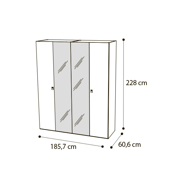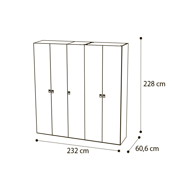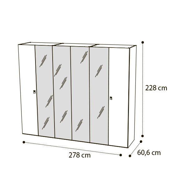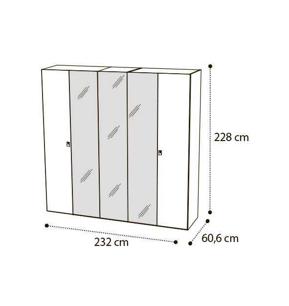 *Возможно собрать шкаф более шести створок. Стандартная комплектация шкафа включает полку и штангу. Для комфортного хранения вещей можно укомплектовать шкафы целым набором дополнительных полок и выдвижных секций, внутренней подсветкой.