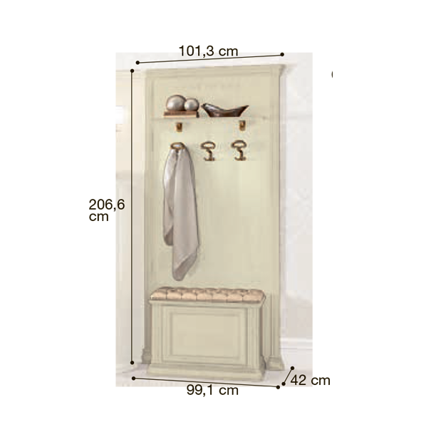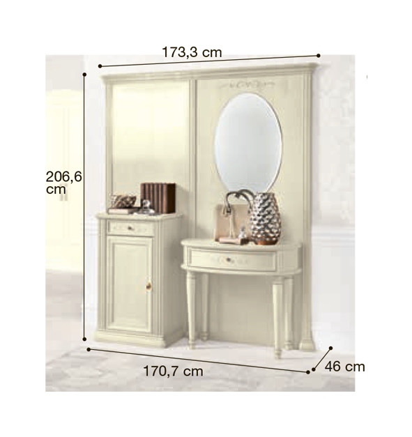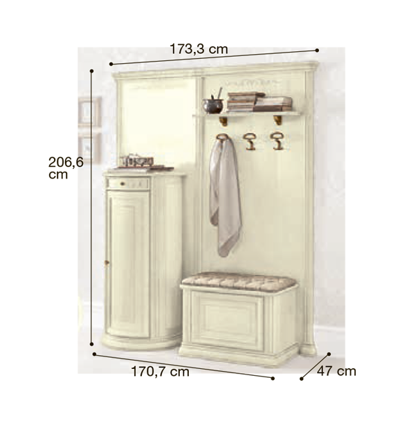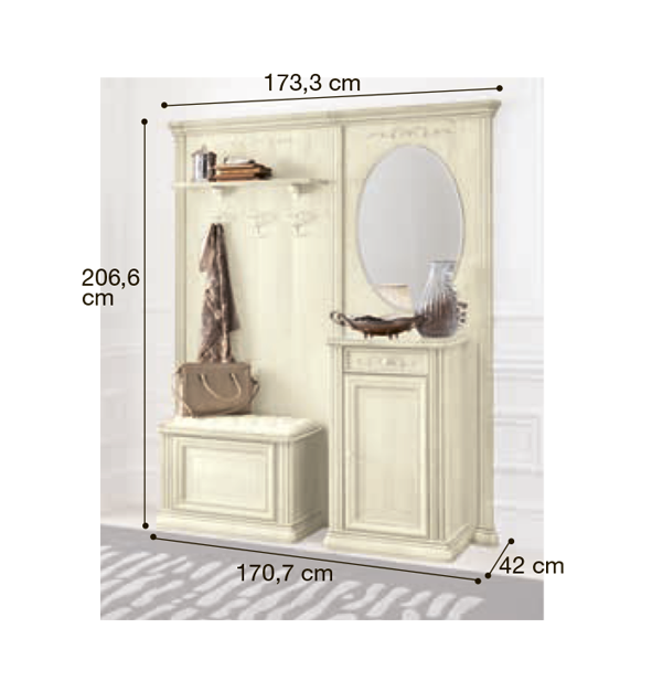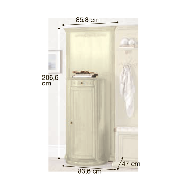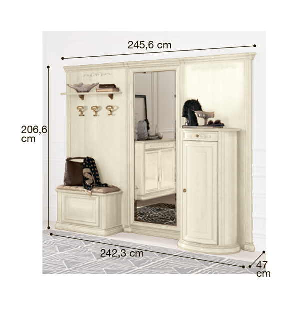 Итальянская прихожая Siena фабрики Camelgroup - это эффектная коллекция, которая привлекает внимание классическим дизайном моделей, использованием добротных материалов и качественной ручной отделкой. Для изготовления мебели используются массив и шпон липы в лакированном покрытии цвета "слоновая кость". Многообразие моделей позволит мебелировать помещение, подчеркивая общую стилистику вашего дома.