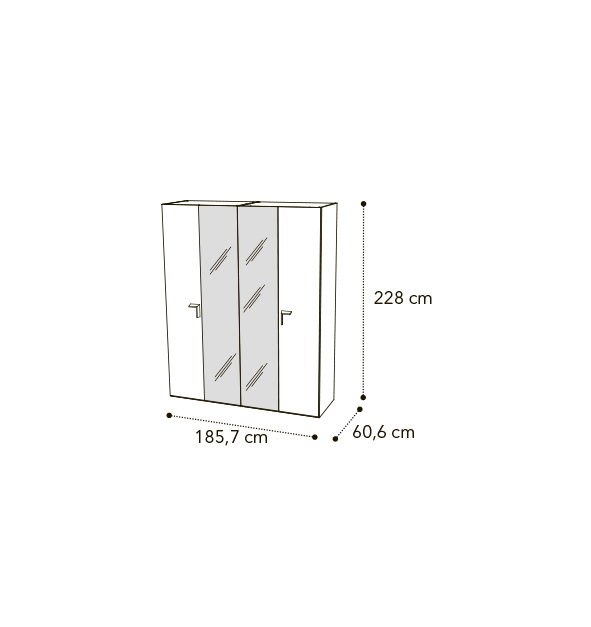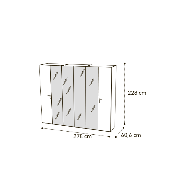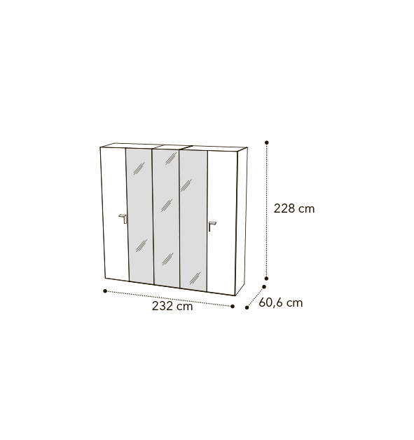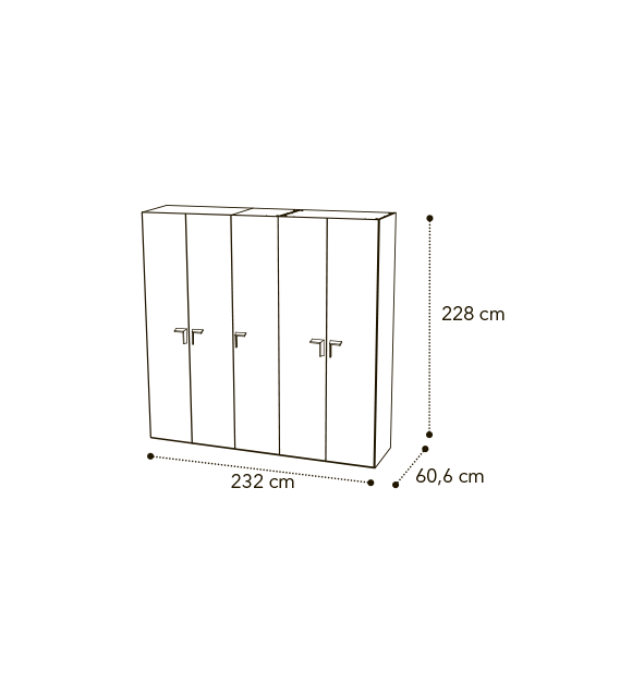 *Возможно собрать шкаф более шести створок. Стандартная комплектация шкафа включает полку и штангу. Для комфортного хранения вещей можно укомплектовать шкафы целым набором дополнительных полок и выдвижных секций, внутренней подсветкой.
